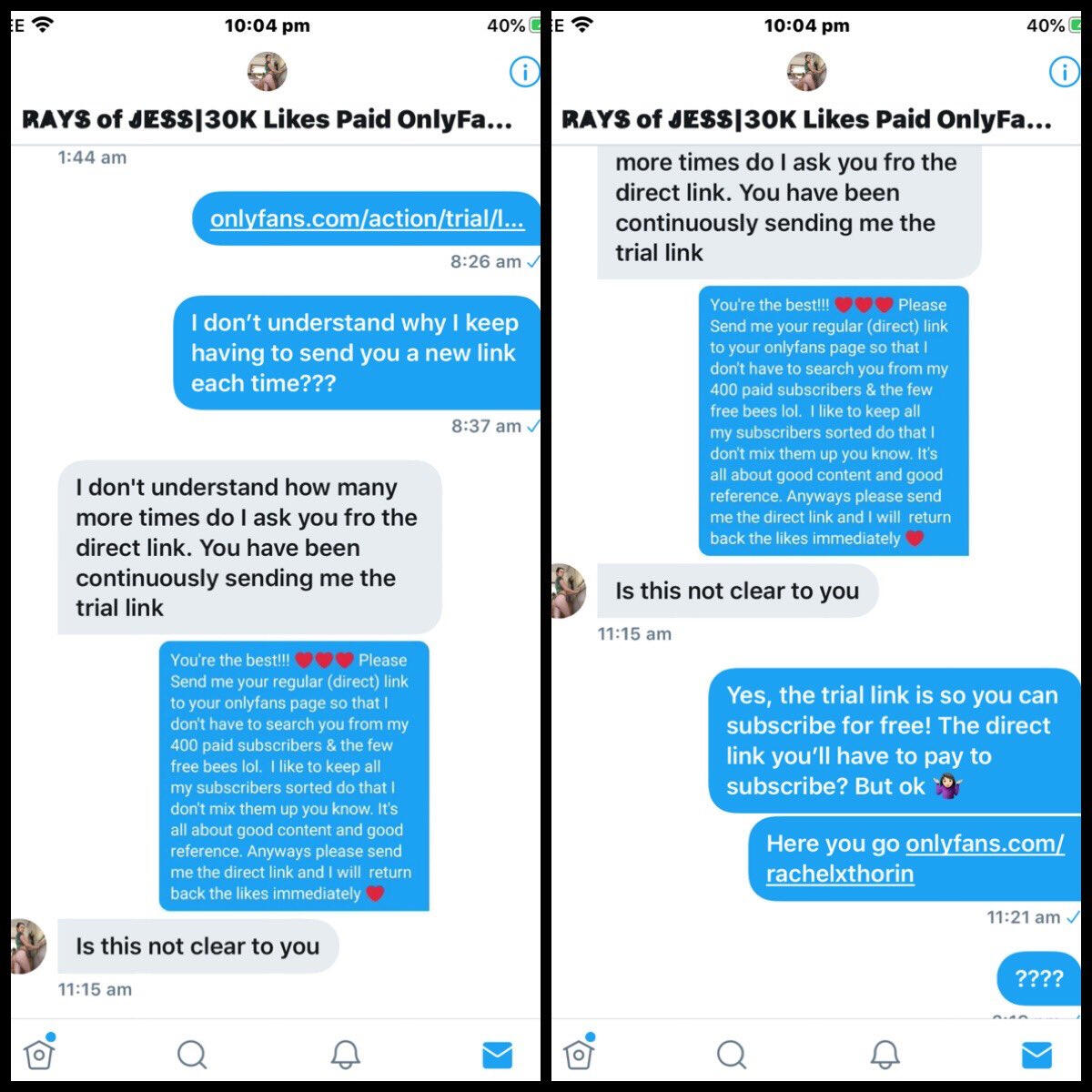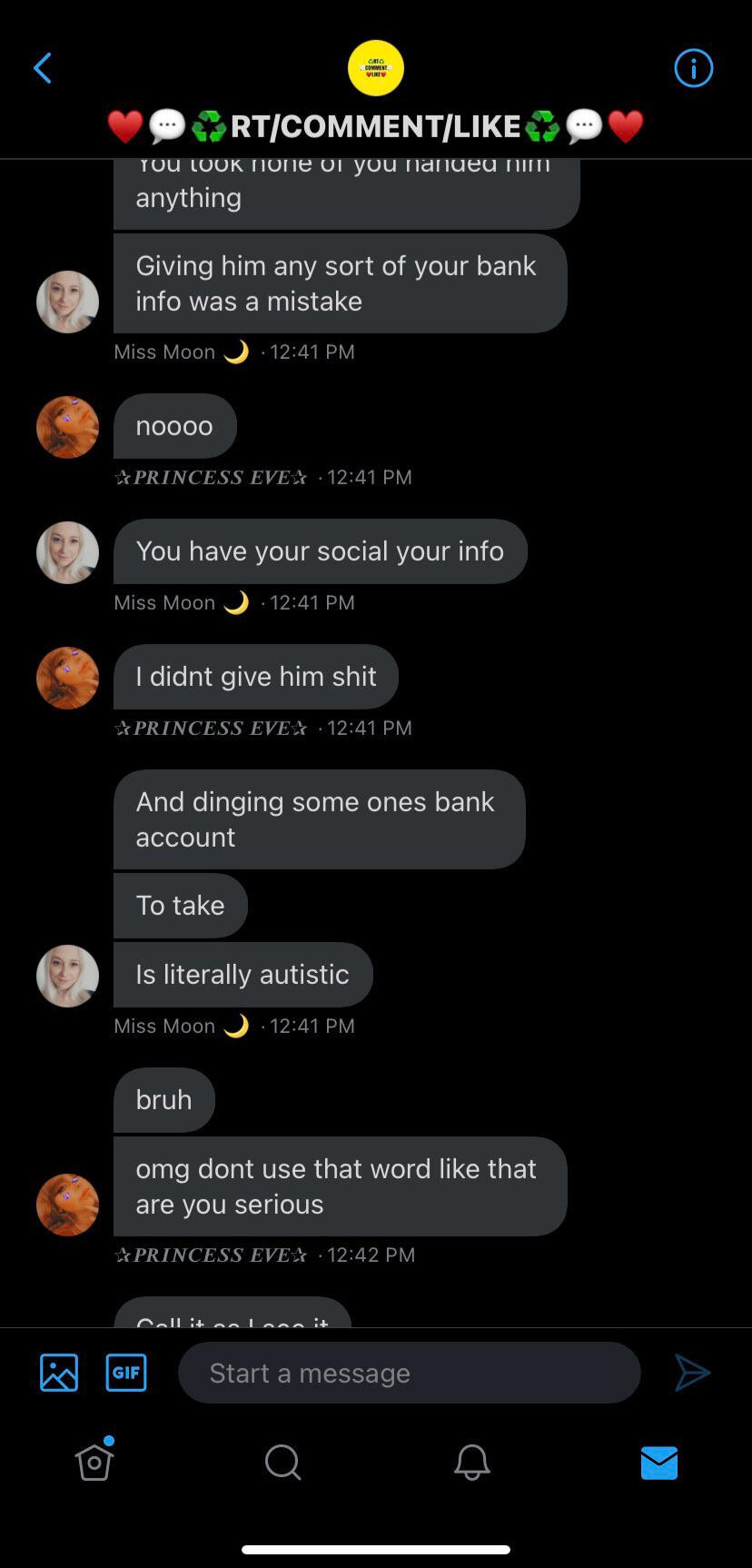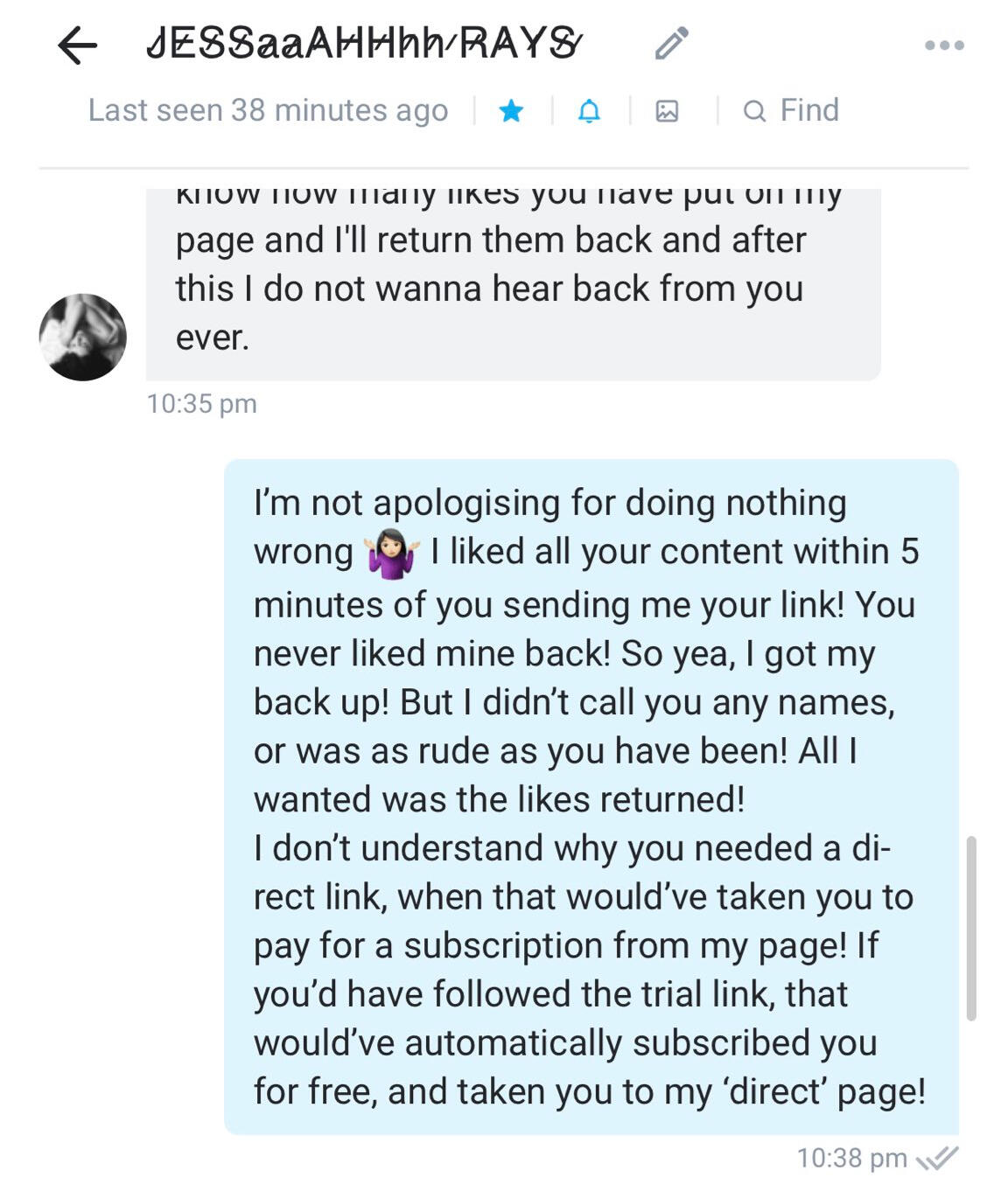 Reason- Steals likes by not returning l4l with other creators, is hostile, rude and abusive when called out, sends phishing links that attempt to hack you, attempts to direct people to a company called infpossibility which is more than likely also some kind of scam. Also sent a mass dm to all her followers claiming to have done their l4l, including those no longer subbedAccounts using this scam tend to use this specific rt4rt thread, watch out! 👇