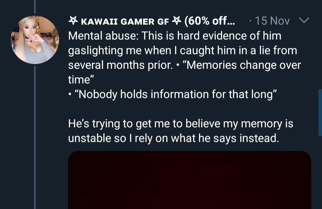 I will not be including the images of physical abuse nor the videos of emotional gaslighting