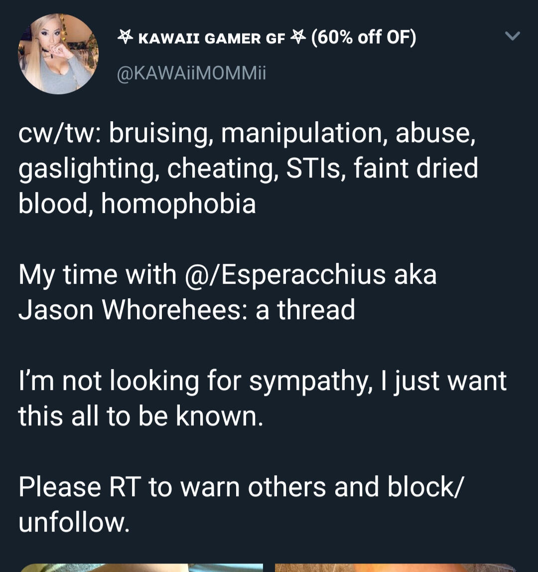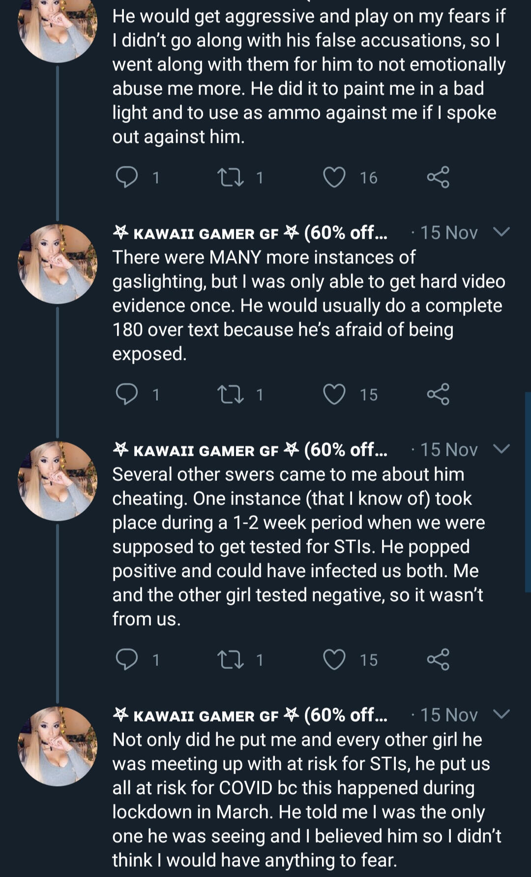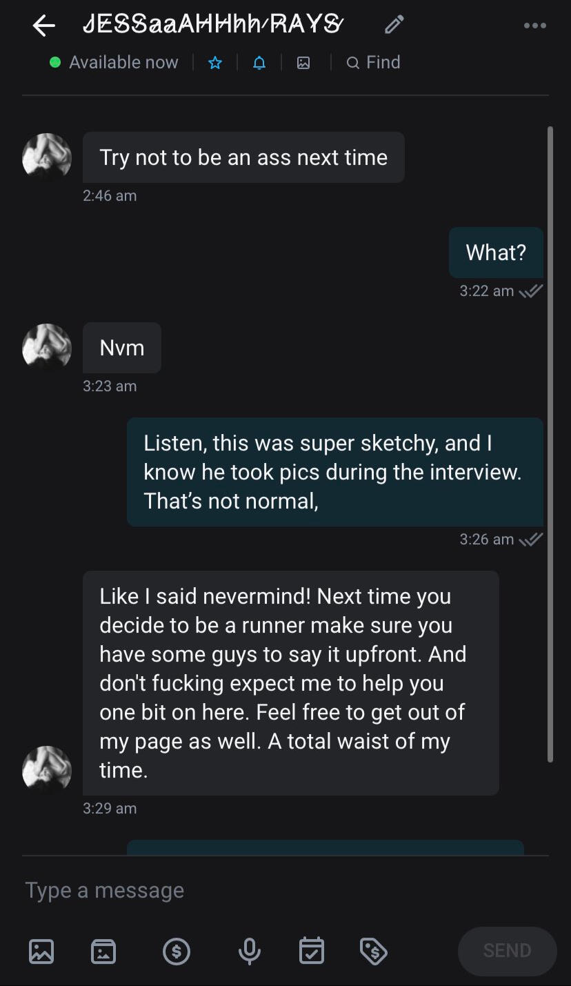 Reason- Steals from sex workers, he may be big but he's a scammer don't fall for his size! He's made many girls lose their twitter accounts and has had his fans attack people.EVIDENCE: