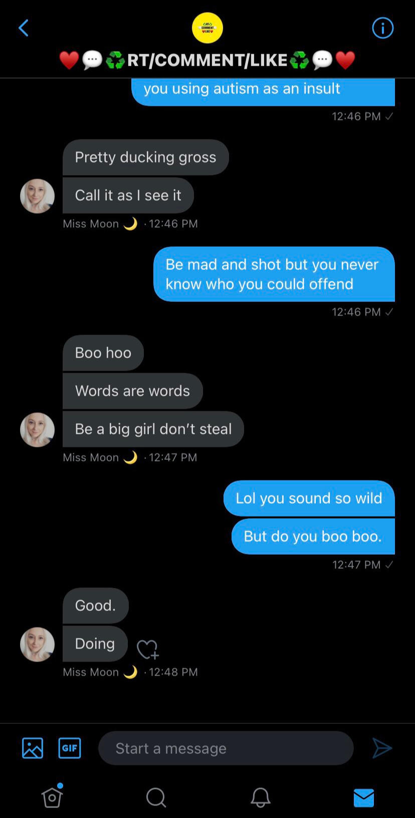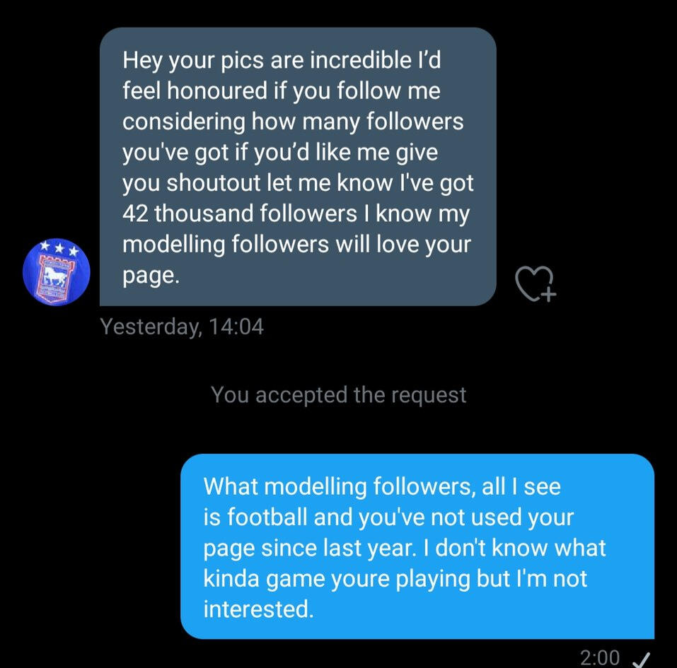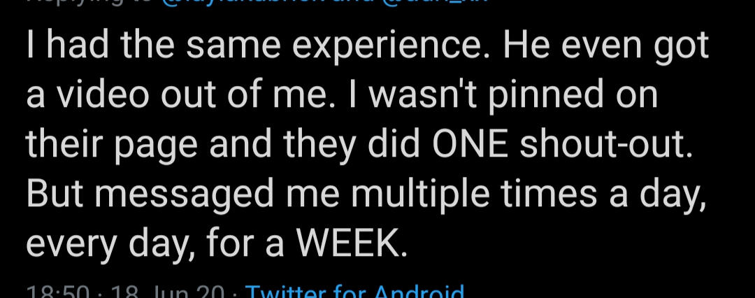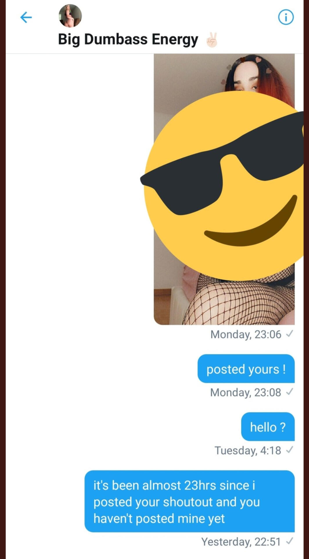 ALSO - apparently steals shoutouts by not posting the shoutout for the other person in a sfs.