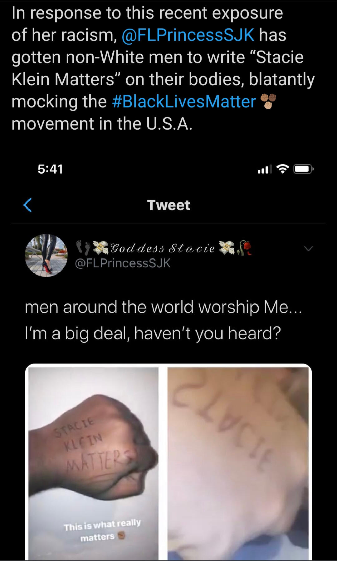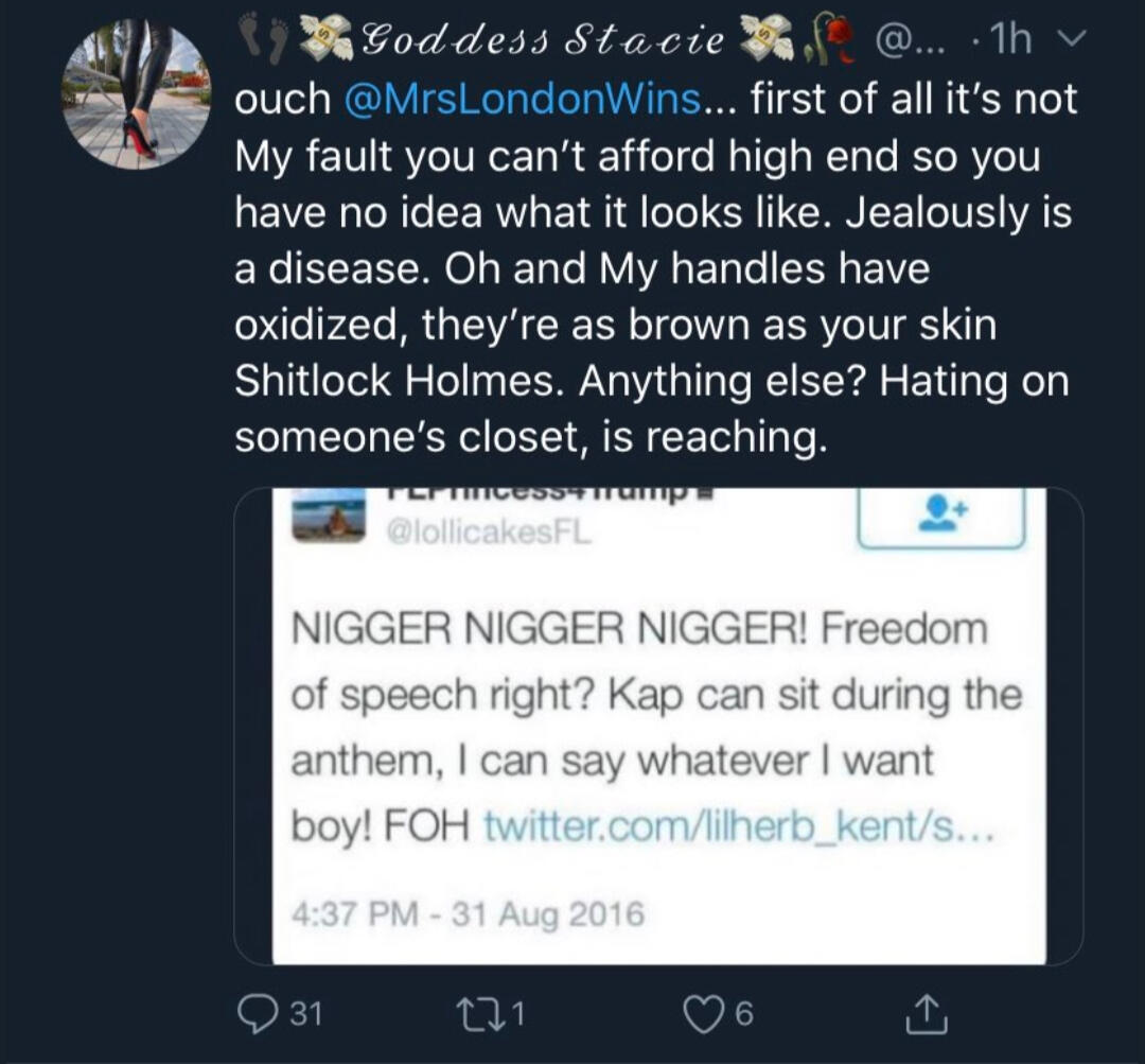 Reason: massive bully, on a subject she has NO experience with as a WHITE female.