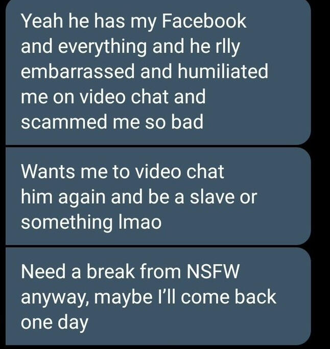 REASON: TOOK MONEY OFF A SEX WORKER TO SHARE A POST OF THEIRS INTO A GROUP, ENDED UP NEVER SHARING IT INTO THEIR GROUP