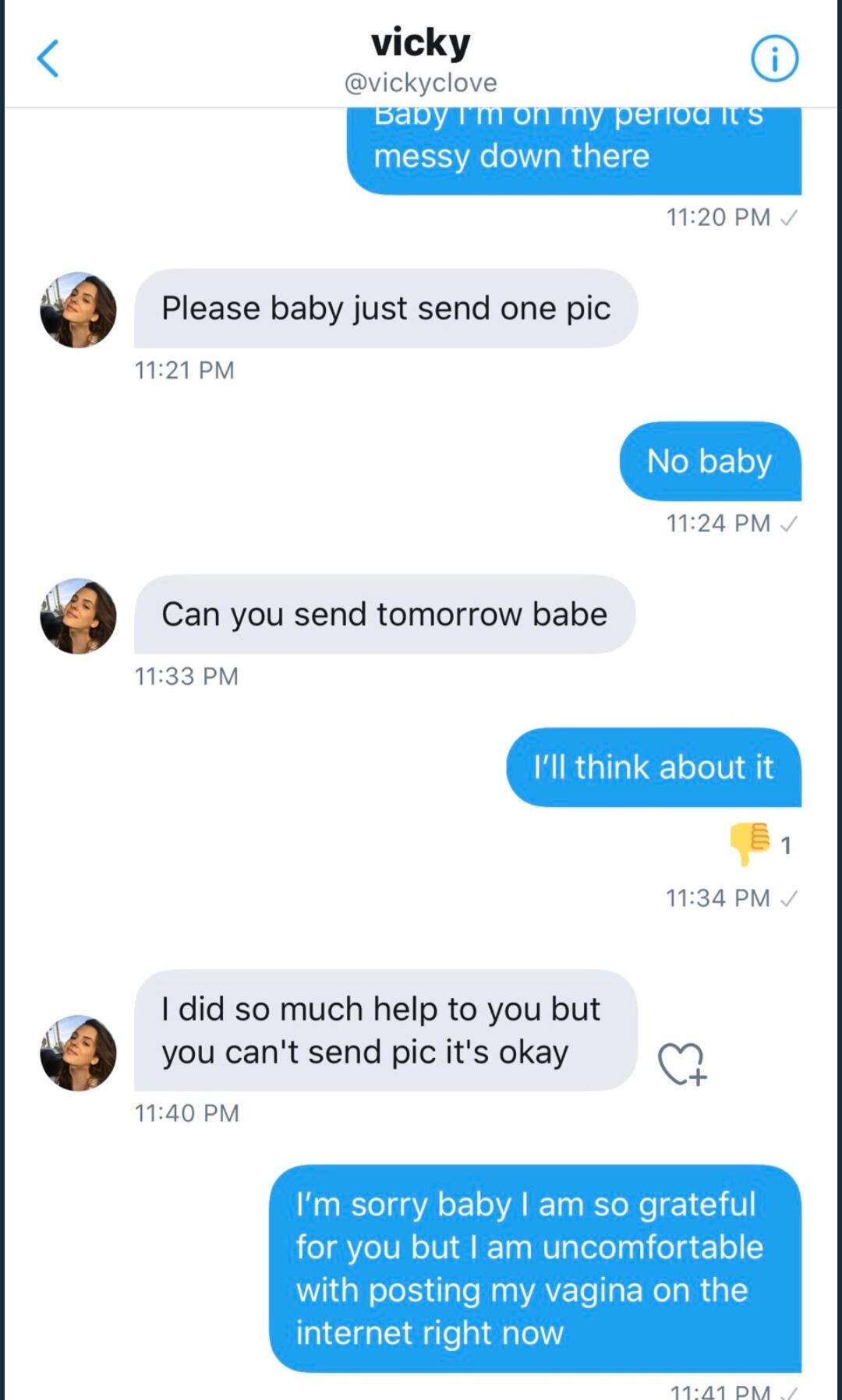 REASON: ASKED FOR EXPLICIT PICTURES AND THEN NEVER POSTED THE PROMISED PROMO (CENSORED PICS WERE SENT FOR PROMO)
