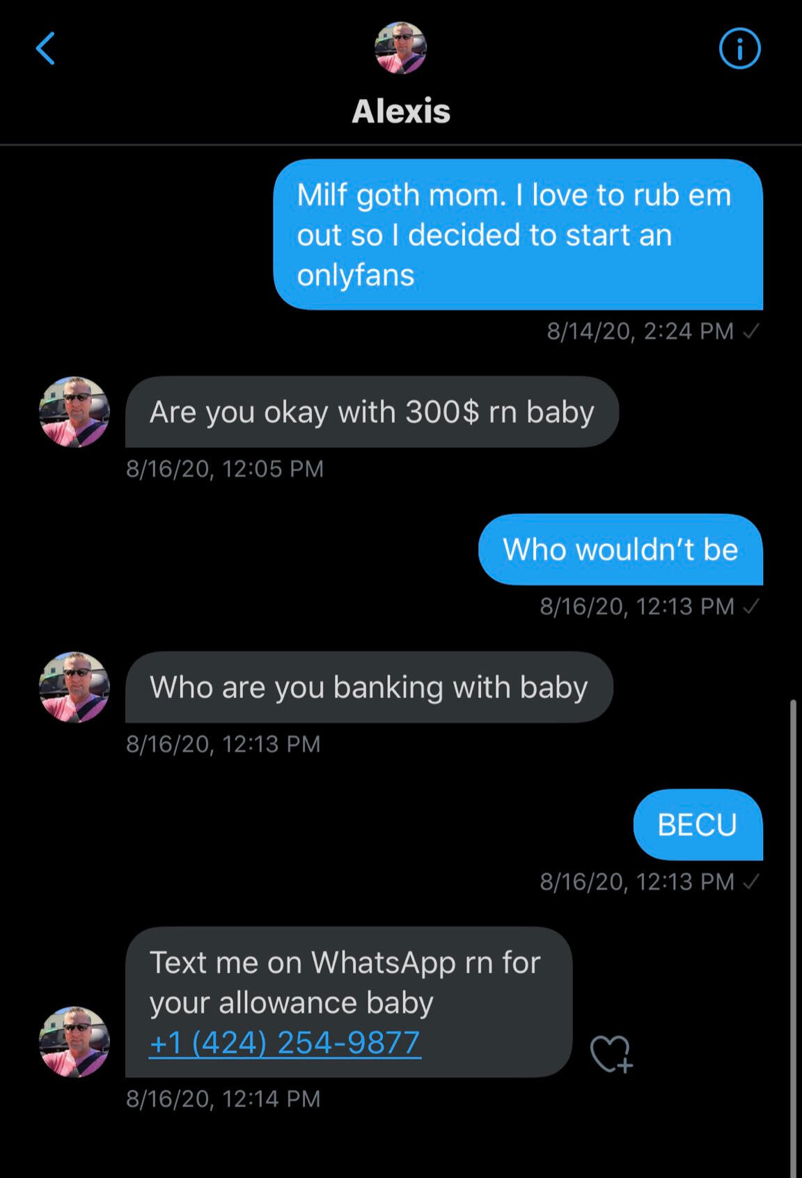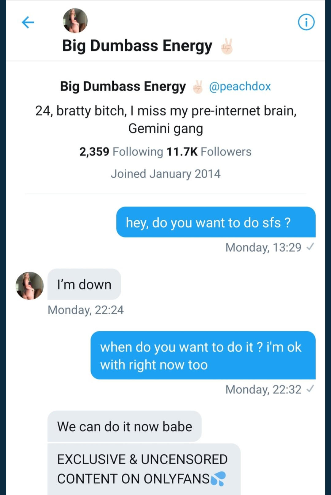 Currently suspended! Remaining on the thread for awareness of fake sugar daddies or mommies.Reason: scammer/time waster, uses bait tweets to lure sex workers - tweets such as 'who's selling' 'I'm buying' ect.2k followers and I have 200 mutuals, BE SMART WITH WHO YOU FOLLOW.