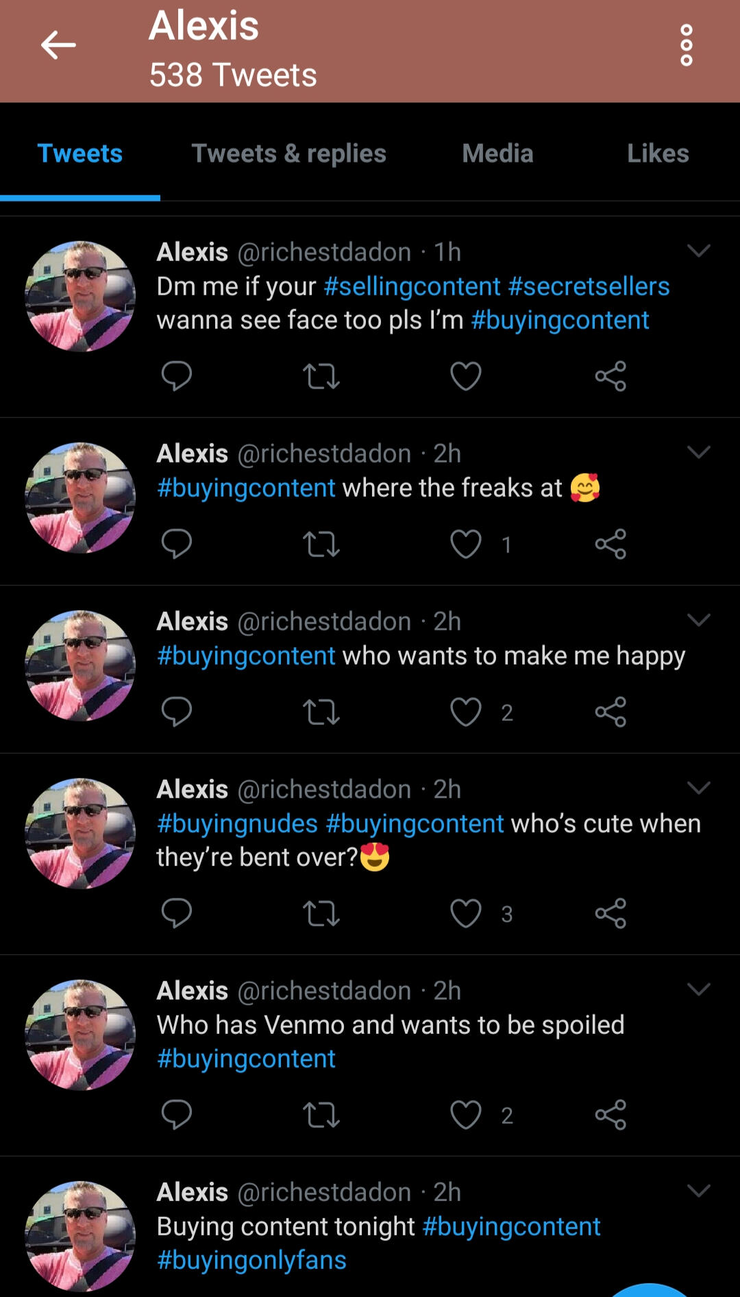 THIS IS ALL THIS ACCOUNT TWEETS.Don't follow these accounts, follow sex workers and promo pages who post genuine threads!