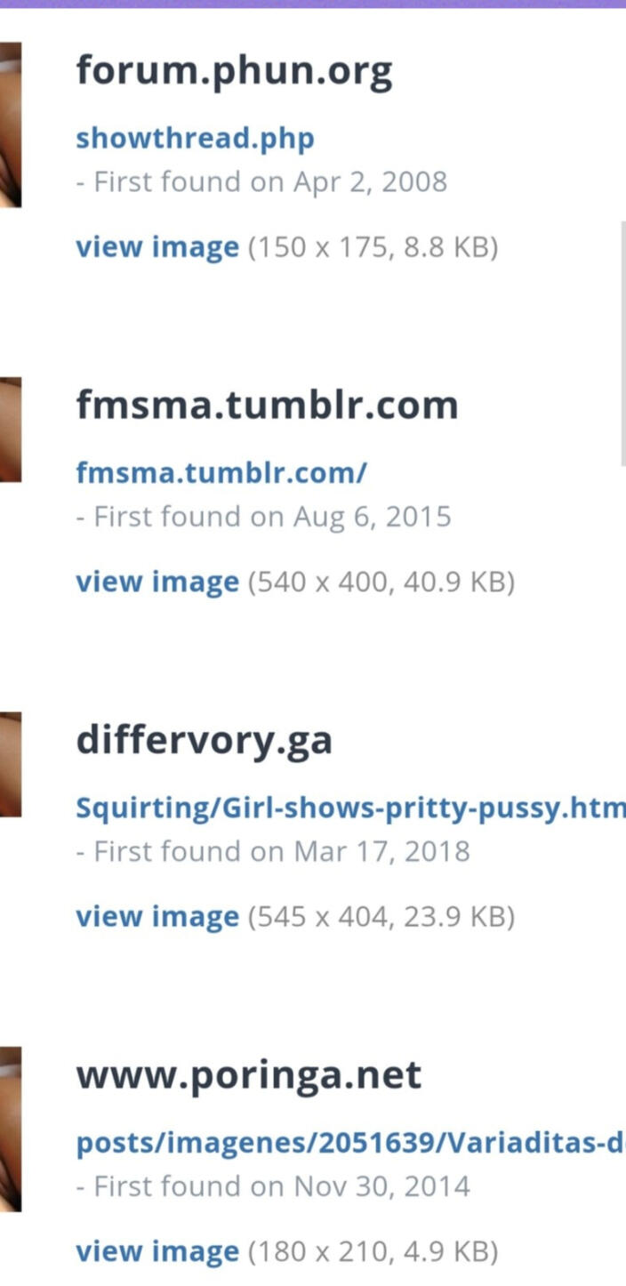 Reason: stole a picture of the Internet and is pretending it was her, reverse image shows its been on the Web for over a decade.EVIDENCE: